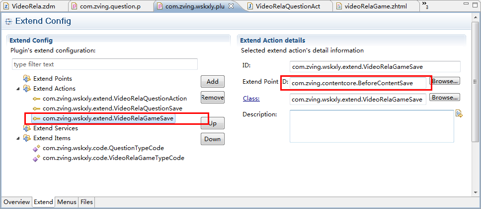 3. 添加class类,实现和视频、音频、文章关联关系处理,继承扩展点:com.zving.contentcore.BeforeContentSave